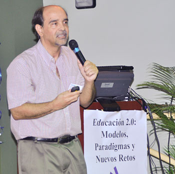 El Dr. Mario Núñez Molina con el tema Reflexiones en torno a una década de aprendizaje en la Web, nos llevó por un ameno recorrido de diez años de integración de la Internet como herramienta de apoyo a sus cursos. Yo sigo a Mario a través de Twitter desde hace bastante tiempo y recibo diariamente sus mensajes (tweets) directo a mi teléfono móvil. Siempre toca temas muy variados e interesantes. Vale la pena que visiten su blog titulado DigiZen: Un Blogfesor Aprendiendo para que conozcan su trabajo y puedan interactuar con él.