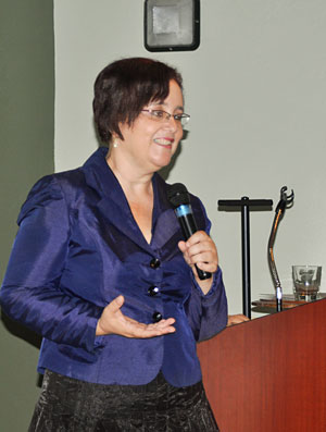 Jeanette delgado se dirige a los presentes durante el Primer Encuentro de Educadores Puertorriqueños.