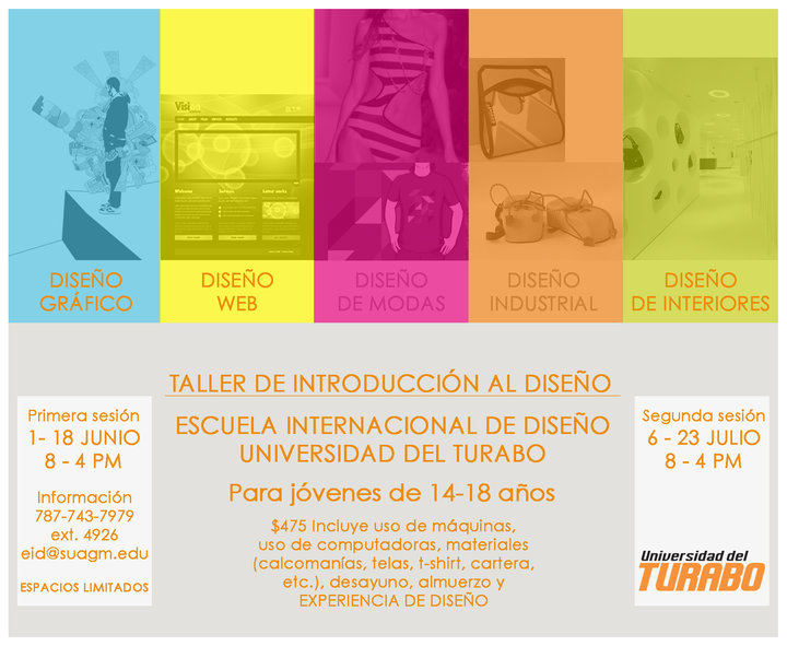 Este verano 2010 estaré dando cursos de introducción al diseño gráfico y diseño de websites en el programa de verano llamado Taller de introducción al diseño. Este Taller será en la Escuela Internacional de Diseño de la Universidad del Turabo y el mismo es para jóvenes entre las edades de 14 a 18 años.