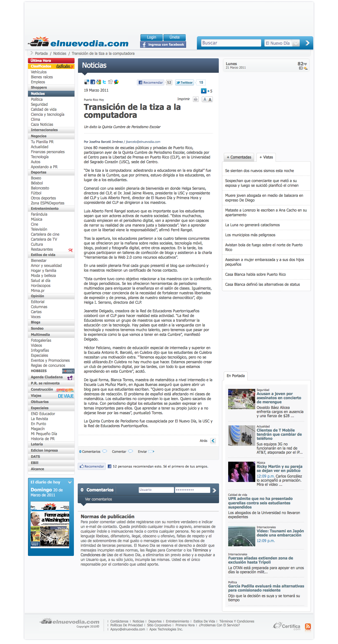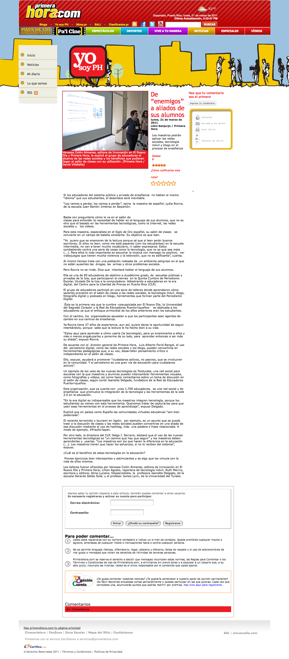 El pasado 18 de marzo de 2011 tuve la oportunidad de ser parte del grupo de educadores y facilitadores que trabajó con 80 maestros de escuelas públicas y privadas de Puerto Rico durante la Quinta Cumbre de Periodismo Escolar.