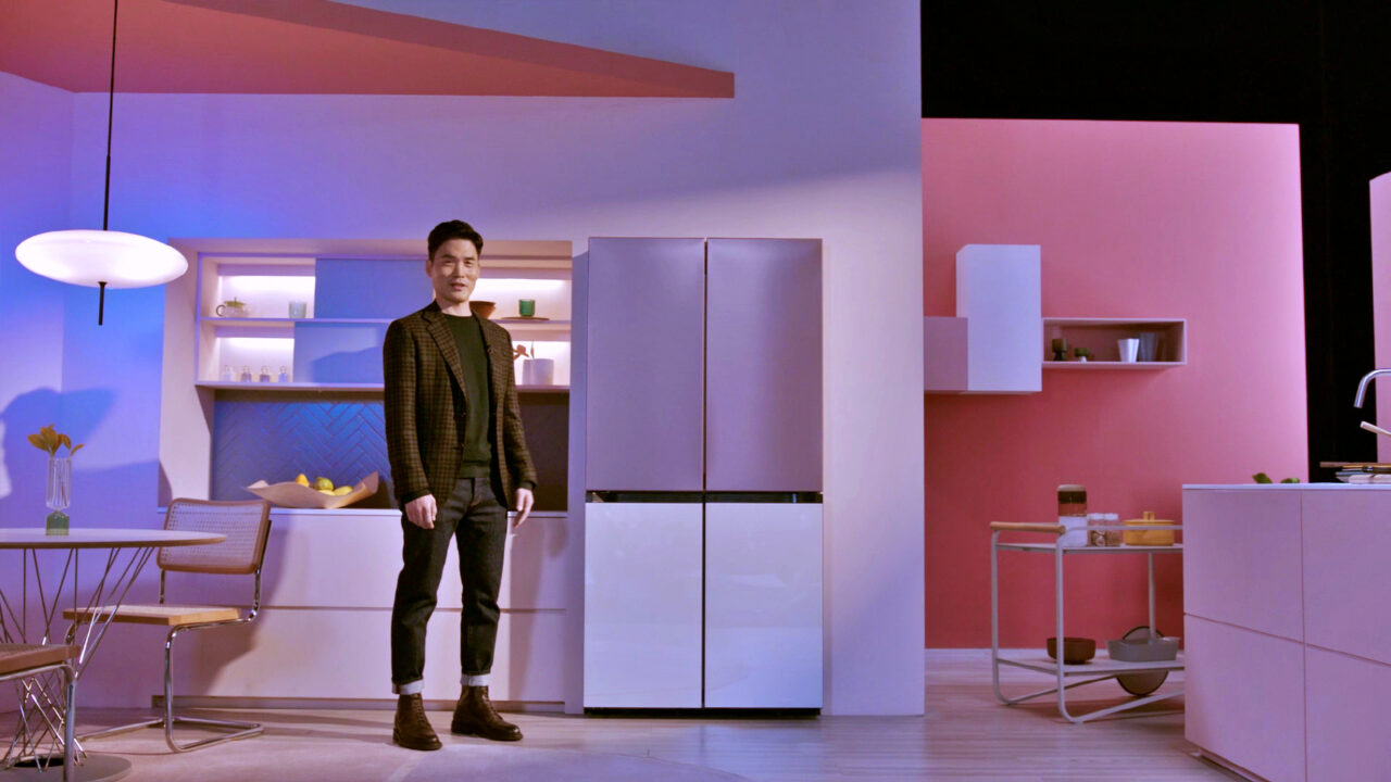 Samsung Bespoke 4-Door Flex: la última versión del refrigerador Bespoke cuenta con paneles intercambiables que vienen con una variedad de colores y materiales que hicieron que el original fuera un éxito, lo que permite a los consumidores ajustar la forma y la función de su refrigerador. El nuevo modelo de 4 puertas, disponible en Norteamérica esta primavera, también incluye un nuevo Beverage Center™, que brinda acceso rápido a un dispensador de agua y una jarra de agua que se llena automáticamente. Samsung Bespoke 4-Door Flex también viene equipado con una máquina de hielo automática dual que no solo produce cubitos de hielo regulares, sino también “picaduras de hielo” más pequeñas para adaptarse a las diferentes preferencias de bebidas frías.