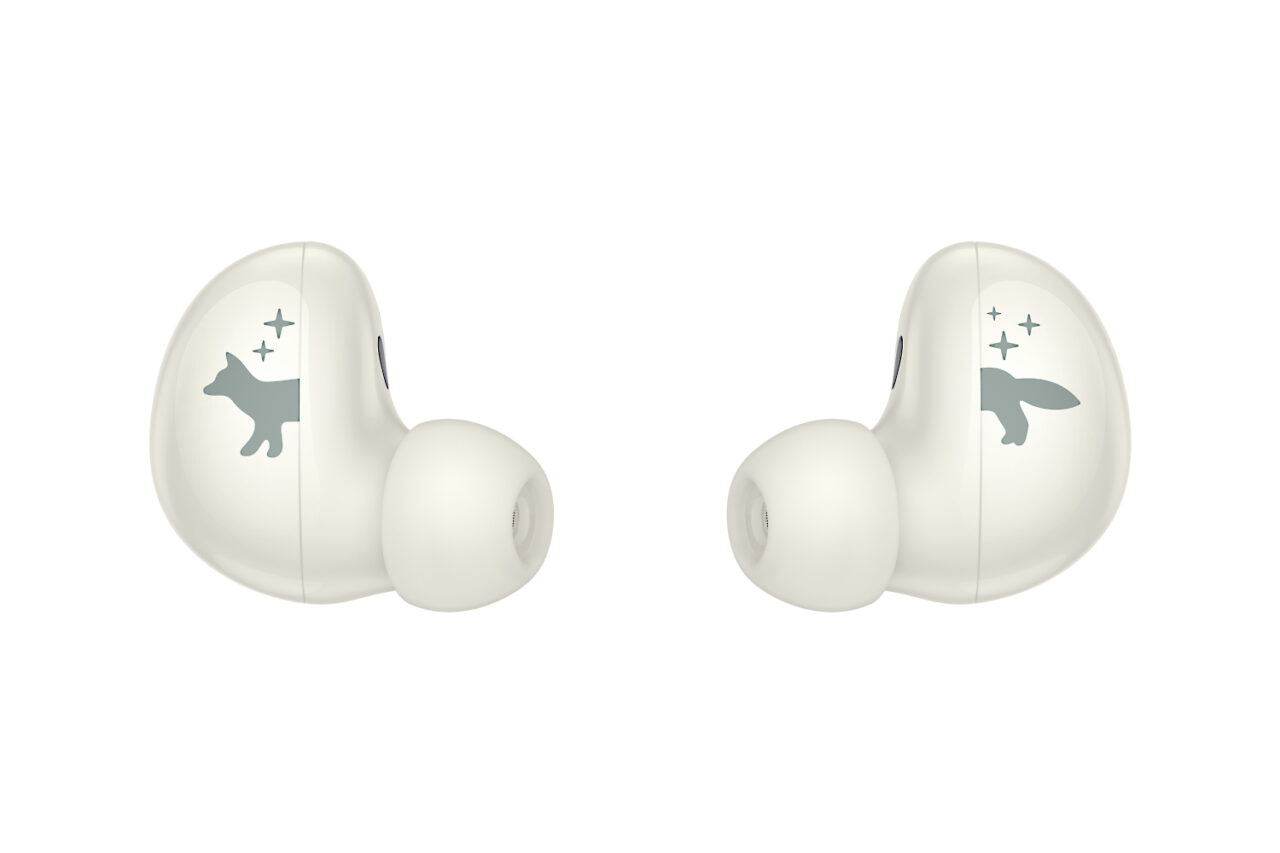 El Galaxy Buds2 Maison Kitsuné Edition también viene en Moonrock Beige y está albergado en una elegante funda de cuero Stardust Grey adornada con un logotipo reinventado de la Cabeza de la Raposa de Maison Kitsuné. El auricular derecho presenta la cabeza de la raposa, mientras que el auricular izquierdo muestra su cola, destinado a representar una jornada ininterrumpida a través del Samsung Galaxy. Los usuarios pueden deleitarse con una calidad de sonido superior y rica y sumergirse por completo en experiencias de audio nítidas y claras, gracias a los parlantes dinámicos de dos vías, la Cancelación Activa de Ruido perfeccionada y el ajuste cómodo de los Samsung Galaxy Buds2.