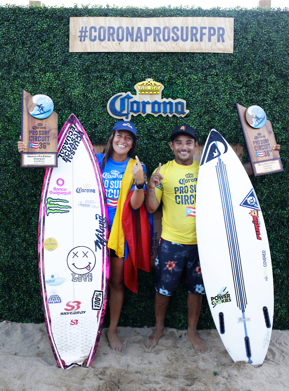 Isabela, Puerto Rico, 17 de octubre de 2022 – La 36ta. edición del Corona Pro Surf Circuit, celebrada este fin de semana en la playa Middles de Isabela, culminó con la victoria en sus respectivas categorías, de la ecuatoriana Dominic “Mimi” Barona y el venezolano Rafael “Nono” Pereira.