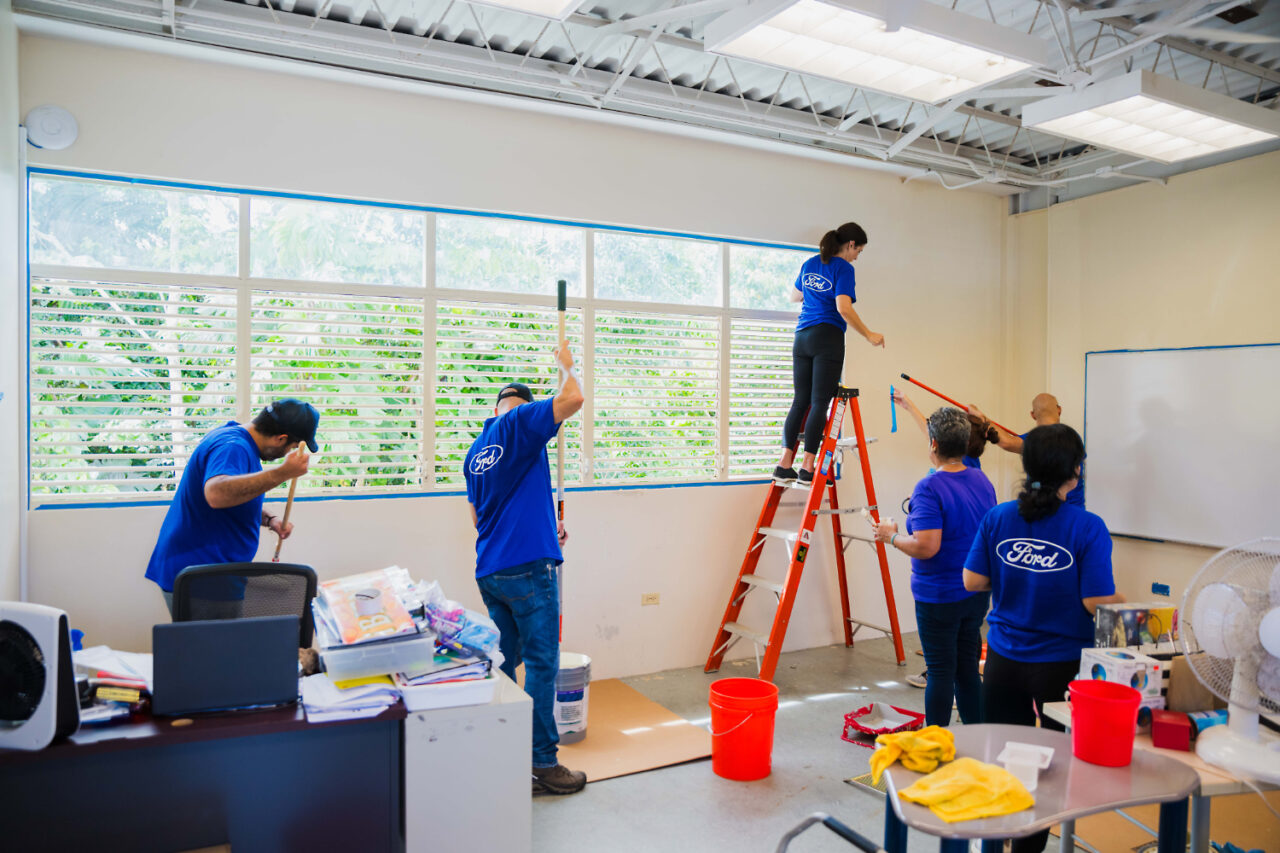 Además de un donativo de $10,000 de parte de Ford Philanthropy para la compra de materiales y equipo de robótica, empleados de Ford Puerto Rico trabajaron como voluntarios en el acondicionamiento y montaje del salón para el Centro de Robótica de Caimito.